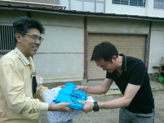 新会員のハッピ贈呈式。