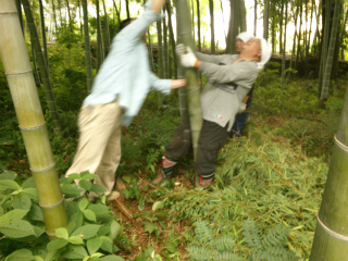 午後12:45に学校へ集合し、会員知り合いの竹林へ向かいました。