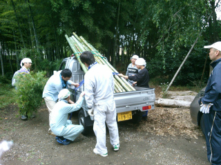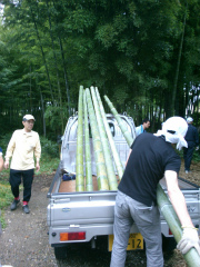 夏休みに行われる流しそうめん用の竹を伐採しに行きました。軽トラックに積み込んだ後、学校へ戻り加工をしました。午後から集合し梅雨の時期でしたが雨に降られず、夕方にはほぼ予定通り終わりました。