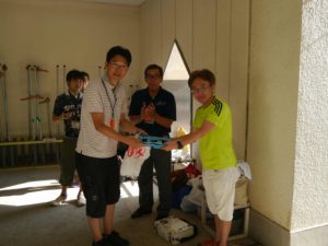 まずは、前回の『竹取物語』から参加のおやじに法被の贈呈です。よろしくお願いします‼