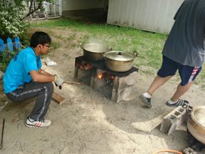 かまどチームも大奮闘。とにかく暑い❗