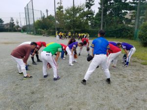 皆さん朝早くから集合し、グラウンドの整備と練習をして体を温めます。 各チーム共に、この日のために練習してきましたので、気合十分!